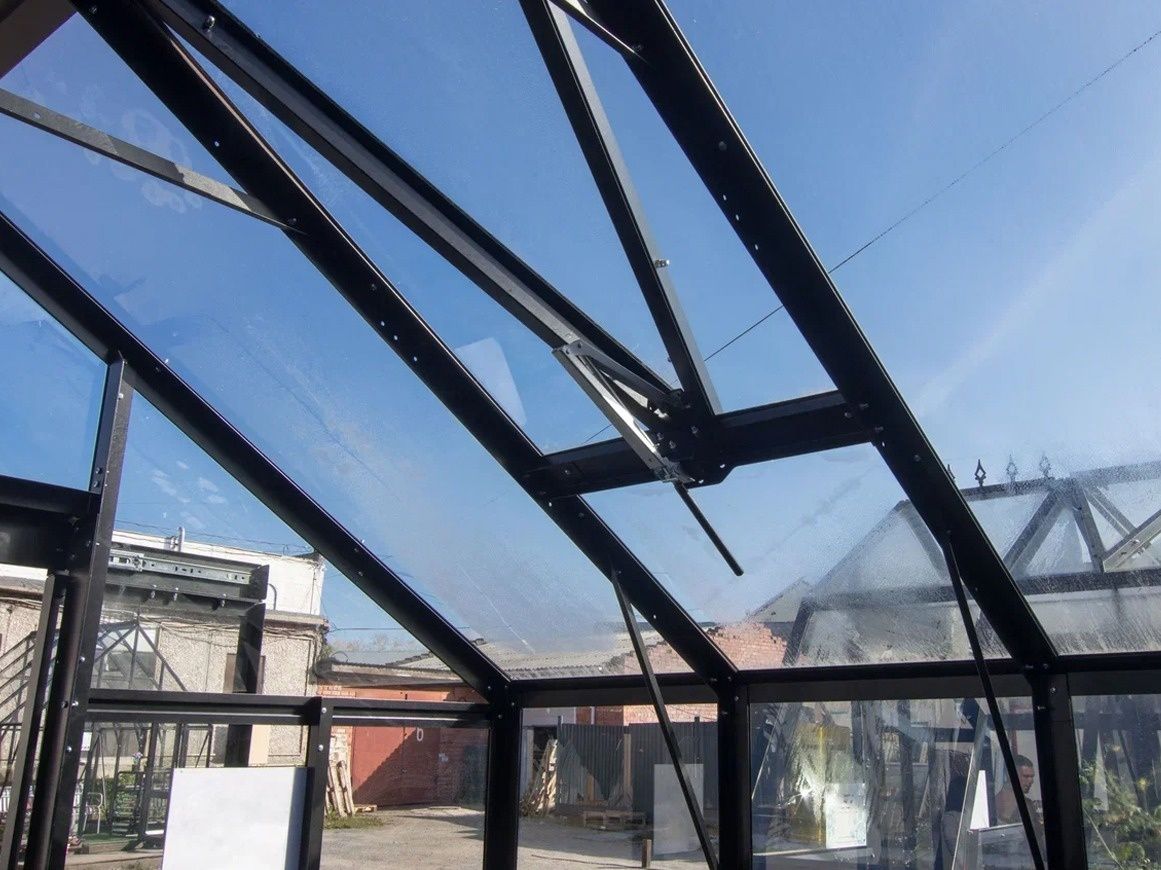 Цена указана за каркас теплицы размерами 3 х 4 метра, с одной дверью-купе в комплекте и двумя форточками в скатах кровли. Без стекла.